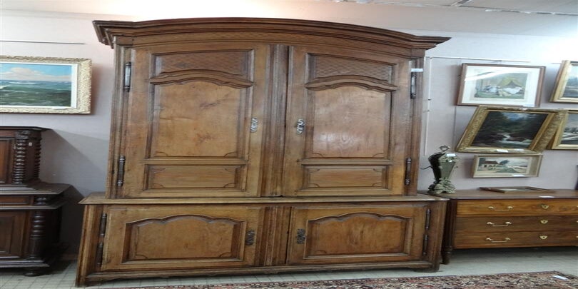 Buffet deux corps à quatre vantaux époque Louis XIV, en partie basse à deux portes moulurées, surmontée en retrait d'une partie haute à deux portes moulurées de trois panneaux avec décor en quadrillage, travail parisien, hauteur 2,90 m, largeur 1,61 m