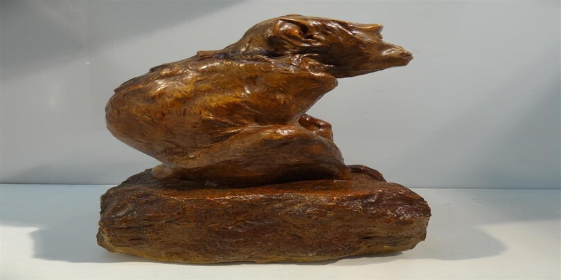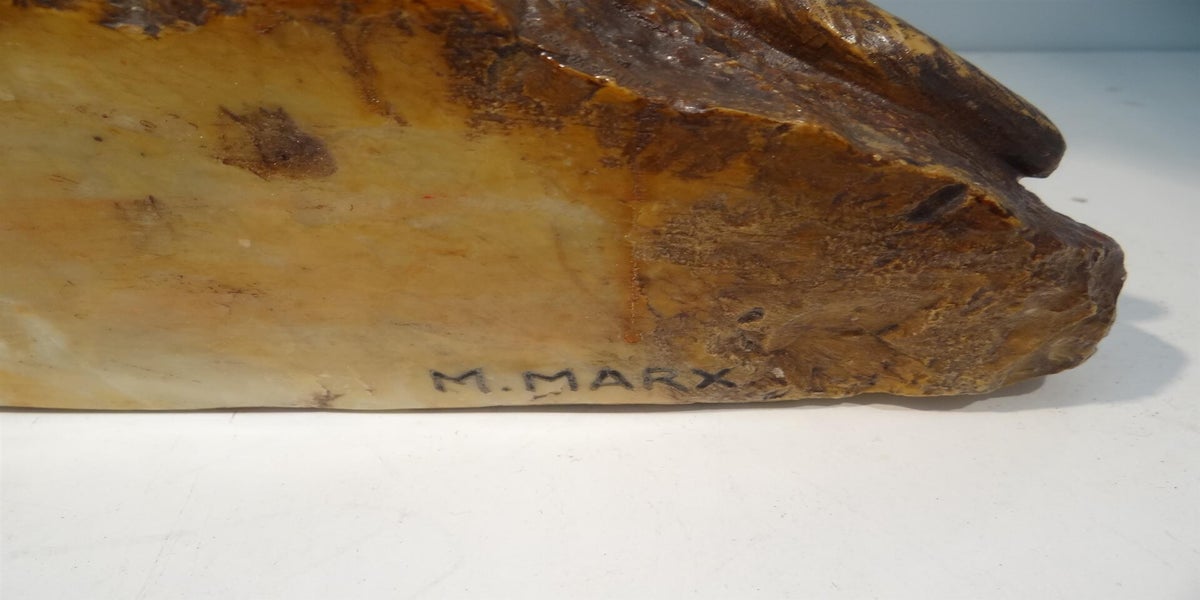 Maurice Roger MARX (1872-1956) "singe assis pensif" sculpture en marbre sienne patiné, signé sur la base en façade, hauteur 40cm largeur 27cm profondeur 21cm