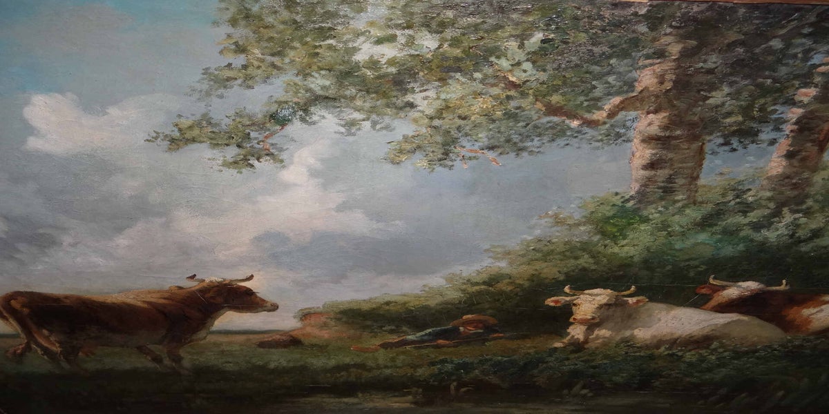 VENNEMAN VERA Ecole belge : " le vacher et son troupeau" Importante HST, SBG, encadrée, dim 90x117cm (restauration une petite pièce)