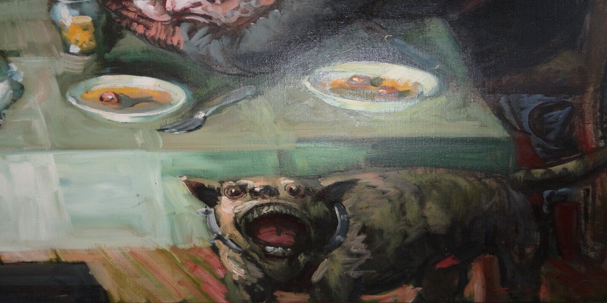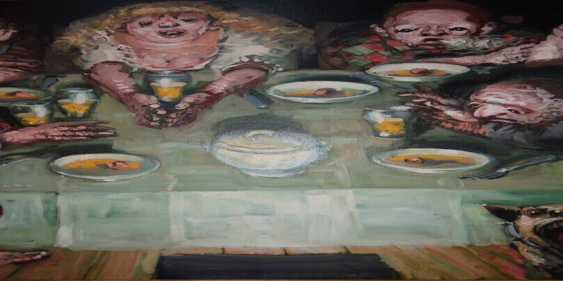 Jörg Hermle (1936) : "Le match de foot" importante peinture à scènes de genres, huile sur toile signée en bas à droite, portant cachet de l'artiste au dos, munie de baguettes doréesDimension : 130x196 cm